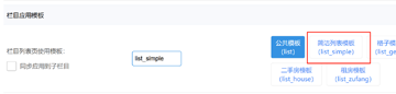 2、列表頁開啟極簡風格:欄目-》分類-》信息分類-》欄目使用模板-》選擇“簡潔列表模板(list_simple)”