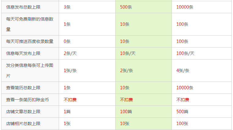 會員后臺首頁不同會員組權限表格采用深顏色以清晰區分,顯示更直觀